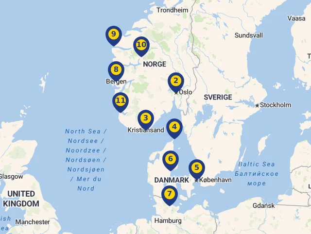 3Kristiansand, Nórsko06. 07. 2027, príchod o 09:00, odchod o 19:00